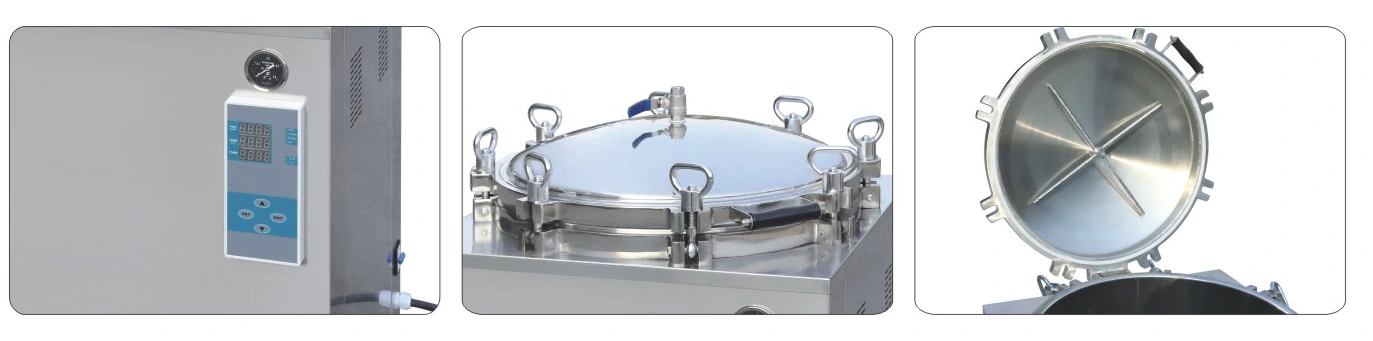 Автоклавот против притисок е еден вид опрема за стерилизирање контролирана од микро-компјутер со средна големина, таа директно ја полни водата во комората за стерилизација за електрично загревање за да создаде пареа со висок притисок како што бара циклусот на стерилизација, а потоа единицата продолжува со стерилизација на артиклите, температурата на водата брзо ќе се олади за 3 минути откако ќе го притисне завршениот артикл. температурата во комората може да се намали на 30~40℃.Уредот е програмски контролиран, постојат две опции за работа за избор: дезинфекција на вриење, чија температура на стерилизирање е пониска или еднаква на 100℃. Уредот е со заштита од преоптоварување и аларм за тревога по стерилизација, лесен и удобен за ракување, безбедна и сигурна дезинфекција на храната. пакување, прибор, инструменти и други артикли. Особено е погоден за тестирање на стерилитет во институции за истражување на храна.